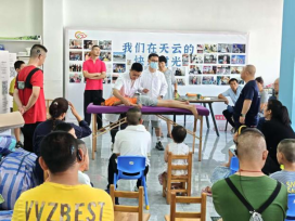 随后,支部充分发挥专业优势,开展了中医问诊、针灸推拿内容丰富、形式多样的义诊与服务活动,并现场示范教学,教老师和孩子们一些简单的自我保健和调理手法。