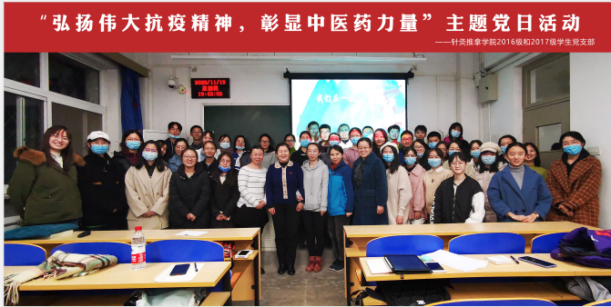 为深入学习宣传贯彻习近平总书记在全国抗击新冠肺炎疫情表彰大会上的重要讲话精神,深入开展爱国主义教育,大力弘扬伟大抗疫精神,yl23455永利2016级和2017级员工党支部联合举办了“弘扬伟大抗疫精神,彰显中医药力量”主题党日活动,邀请东方医院驰援武汉抗疫一线护士李秀丽和陈默岩讲授抗击新冠肺炎疫情的主题党课——我们在一起。2016级和2017级全体党员参加了学习,活动由2016级员工党支部书记刘佳主持,联系支部院领导、公司党委书记列席了活动。