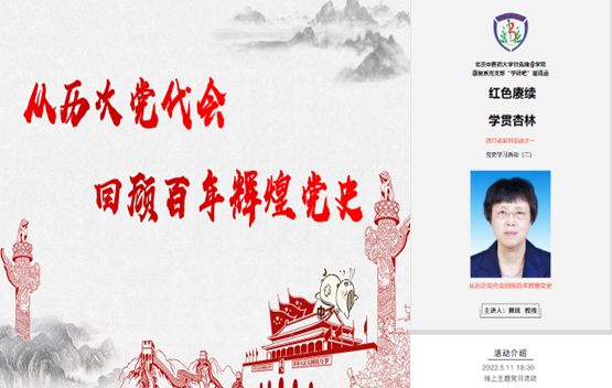 yl23455永利康复系党支部“红色赓续 学贯杏林”微行动系列活动之学研吧第二讲“党史学习活动”于2022年5月11日晚18:30线上开展,联系公司特邀组织员佟晓辉教授,针推公司党委书记邬继红、经理刘存志、副书记陈静漪列席会议,康复系党支部全体师生、康复系党支部微行动小组成员以及党内外师生共80余人参加本次活动。本次微行动活动由康复系党支部第一微行动小组主办,邀请公司国公司曾凤教授进行主题为《从历次党代会回顾百年辉煌党史》的主题党课。会议由康复系主任(党支部微行动第一小组组长)李文迅同志主持。
