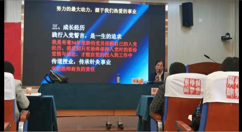 张露芬教授向师生们回顾自己在党和公司的培养教育下40余年的成长经历,尤其是实验针灸教研室的建立以及实验针灸学课程的开设历程。她说,践行入党誓言是一生的追求;传道授业传承针灸是一生的事业。她教导青年党员应该实事求是,尤其从事科学研究事业,要经的起挫折和磨练。