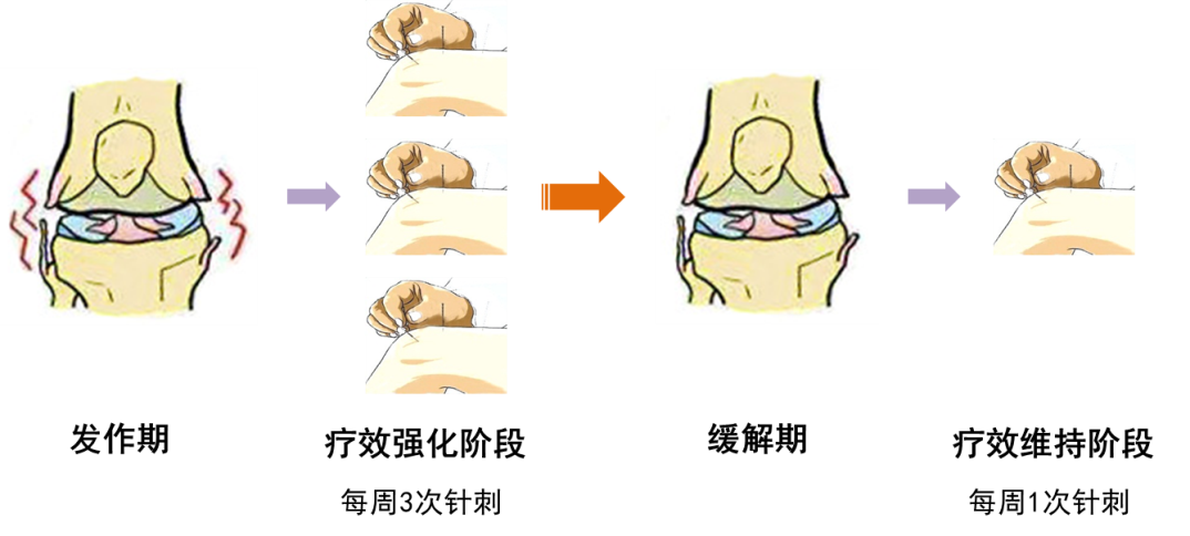 慢性疼痛是公众日益关注的健康问题,也是针灸临床最常见的疾病类型。该项研究基于KOA构建了针刺治疗慢性疼痛的方案,在发作期可采用每周3次的针刺治疗快速控制病情,属于针刺疗效强化阶段;在缓解期可采用每周1次的针刺治疗维持疗效,保持针刺的长期效应,属于疗效维持阶段。该研究为针刺治疗KOA提供了有效性的证据,为临床上针刺治疗频次的选择提供了重要参考。