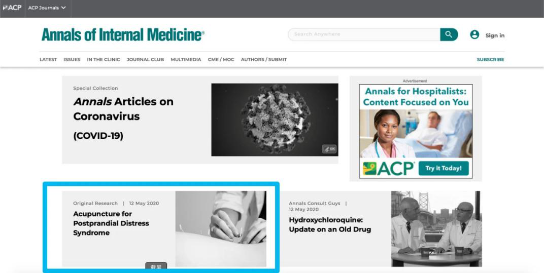 《内科学年鉴》创刊于1927年,是美国内科医师协会的官方杂志,2019年杂志影响因子为21.317,被称为国际内科学领域“第一刊”。该项研究是中国大陆在《内科学年鉴》刊登的第2篇针灸领域相关研究,标志着我国针灸临床研究质量和水平越来越获得国际广泛认可,对推动针灸的现代化和国际化具有积极作用,是中医针灸走向世界的又一标志。
