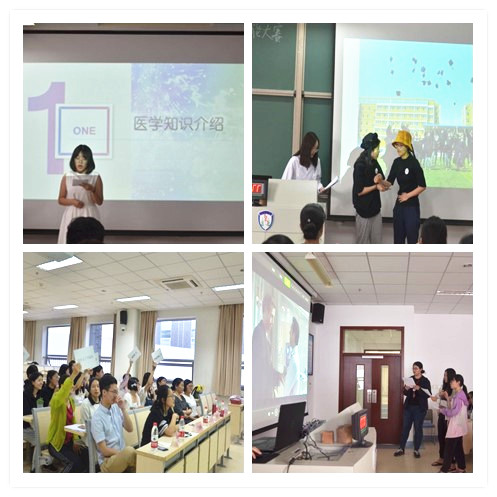 比赛共分为医学知识介绍、视频配音、医学词汇抢答三个环节。第一个环节为医学知识介绍,参赛小组对有关医学的一个术语进行简短英语讲演。各队的选题异彩纷呈,有的以中国传统养生文化为题,介绍中医养生知识;有的以“关节炎”、“小柴胡汤”、“肾阳虚”为题,就其产生的原因、症状、药理等方面展开演讲;还有的别出心裁,以情景剧的形式,再现了中医问诊的过程,她们生动的表演,流利地口语表达赢得在场观众的阵阵掌声。第二个环节为英语视频配音,每个参赛小组选择一段与医学相关的视频进行配音,每支队伍用不同的展示方式将医生的情感与反思通过流利英语语言表现了出来。有的是关于医生的道德反思,或者是病人与家属之间的对话,还有紧张的急诊场景,视频节奏紧凑,选手们流利准确地衔接,仿佛他们就是剧中人。其中“针有意思队”的选手用流利自然的语言演绎剧中的人物,她们更注重剧中的细节,甚至模拟了剧中人物的动作声音,最后哽咽的场景配音效果达到极致,在场观众为之动容。第三个环节为医学词汇抢答,通过屏幕展示中西医相关词汇与短语,进行抢答英汉互译,此环节对选手的速度与智慧均有所考验。
