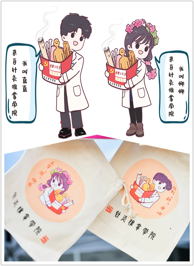 以“真真”、“娜娜”形象为媒,公司为新生设计了背包、书签、文化衫等系列纪念品,以新生们喜闻乐见的风格和形式帮助他们接受卡通形象所赋予的朋辈教育意义;不断构建融针推专业教育寓意、文化传播载体、思政育人认同载体“三位一体”的卡通媒介教育模式。