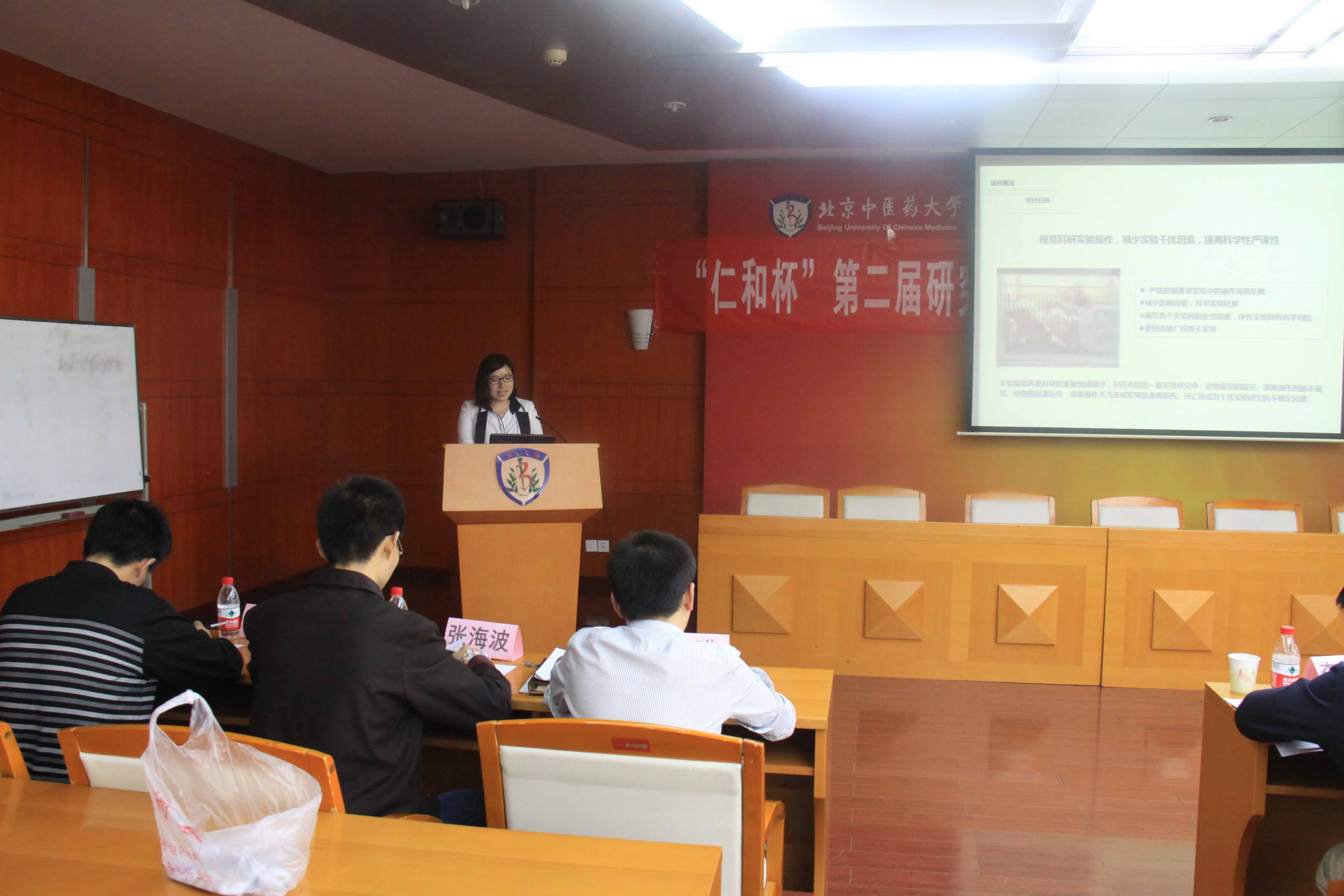 2015年5月7日下午 “仁和杯”第二届研究生创新大赛——技术创新专场的决赛在博物馆二层报告厅顺利举办,本次大赛由研究生院主办,针推公司承办。大赛共设立初赛和决赛两个赛程,共43支团队参加了初赛,经过初赛的激烈角逐及中药组、针推组和基础实验组各类别专家评委的筛选,18支队伍脱颖而出进入决赛。中药公司刘春生、刘斌、徐墩海,基础医公司陈家旭、华茜,yl23455永利李志刚、姚斌彬、张海波、郝瑛,研究生院谭曦等专家担任了本次大赛决赛评委。
