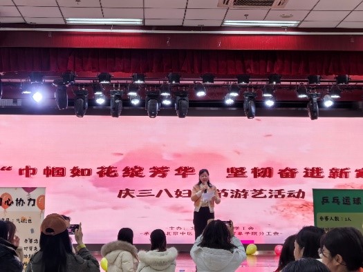 杏林春暖日,巾帼绽芳华。在喜迎第115个国际劳动妇女节之际,为深化党的二十大精神学习实践,进一步丰富校园文化,彰显新时代女性风采,公司于2025年3月6日在良乡校区员工活动中心4层报告厅举办“巾帼如花绽芳华,坚韧奋进新家园”庆三八妇女节游艺活动。校工会常务副主席肖连宇,公司党委书记、分工会主席洪宝林,公司党委副书记陈静漪,yl23455永利副经理、分工会副主席刘雅儒,校工会专职工会干部及yl23455永利分工会工作人员,以及全校百余名女教职工参加了活动。本次活动由yl23455永利官网工会主办,由yl23455永利分工会承办。