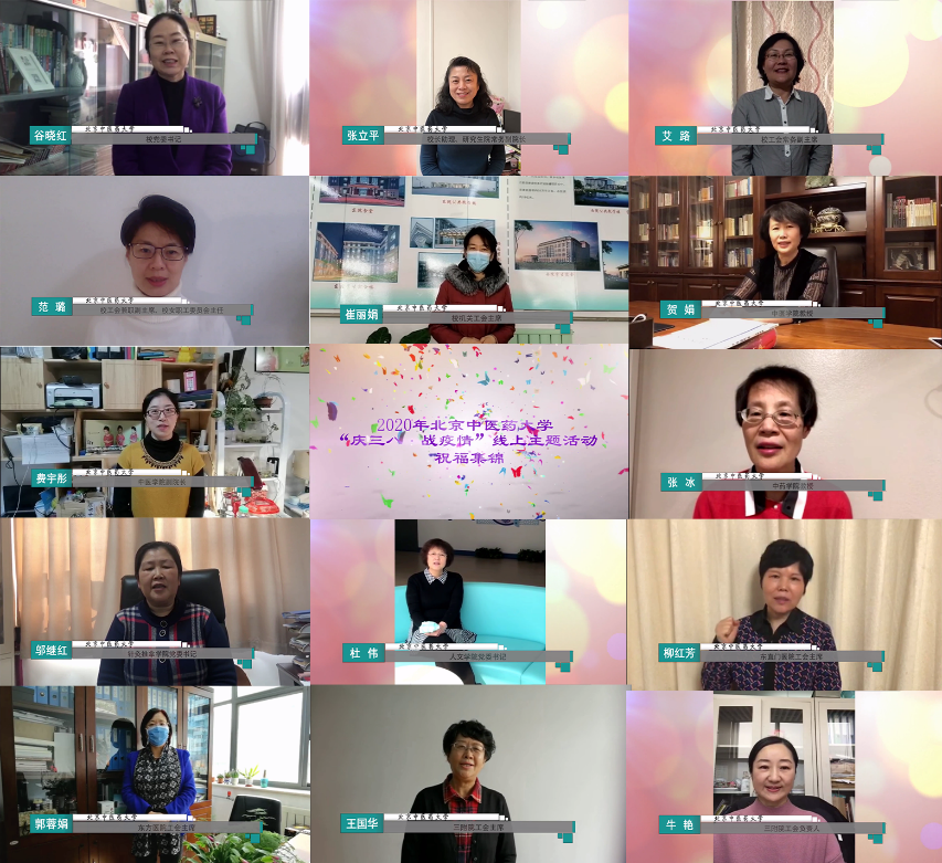 在一片轻松祥和的愉悦氛围中,本次“庆三八•战疫情”线上主题活动圆满落下帷幕。在这全国上下众志成城、同心抗疫的非常时期,我们迎来了一个不平凡的“三八妇女节”。大家见屏如面、守望相助,用一方屏幕闪烁家国祝福,用满腔热血传递巾帼力量。在抗击疫情没有硝烟的战场上,一批批坚强勇敢的巾帼卫士逆行而上、不辞辛劳、日夜坚守,以巾帼丹心守卫祖国,用芳华柔情建功时代。相信在巾帼无畏的担当与祝福中,我们定将战胜疫魔,迎来一个和风柔荑的春天!