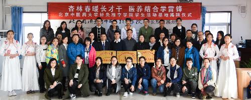 出席活动的领导有北京市中医管理局医政处副处长赵玉海、房山区老龄办副主任崔小梅、房山区卫计委医政科科长晋长浩、北京淞行中龙医疗管理有限公司董事长翁庆苍、副董事长兼总经理唐勤、校学工部杜伟部长、校人才招聘处处长田润平、校团委书记李天罡、公司党委书记邬继红、经理赵百孝。揭牌仪式由公司党委副书记侯中伟主持。